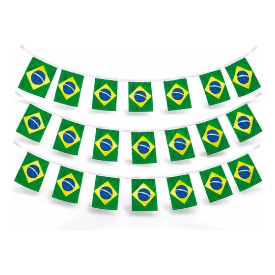 As Bandeirinhas do Brasil com 5 metros de comprimento são perfeitas para decorar ambientes com muito estilo e espírito de torcida. Ideais para eventos esportivos, Copa do Mundo, festas temáticas, escolas, bares e comemorações patrióticas.