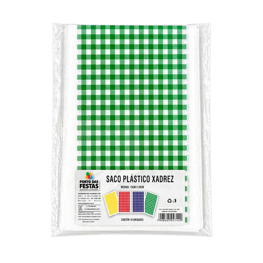Leve mais praticidade e estilo para sua festa junina com a Sacola Plástica Xadrez Verde! Ideal para montar lembrancinhas, kits de doces ou organizar itens do seu arraiá com muito charme e cor.